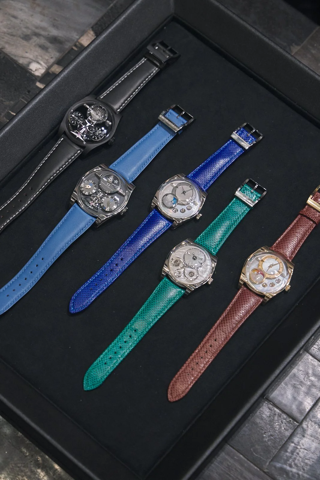 Both keep the 15-second jumping escapement and deconstructed time display, but offer different aesthetic entry points. Aleph suits those who appreciate understatement; Contrast appeals to collectors who want their watch to start conversations. Neither compromises on the core philosophy: the movement is the dial, and the dial is the movement.
