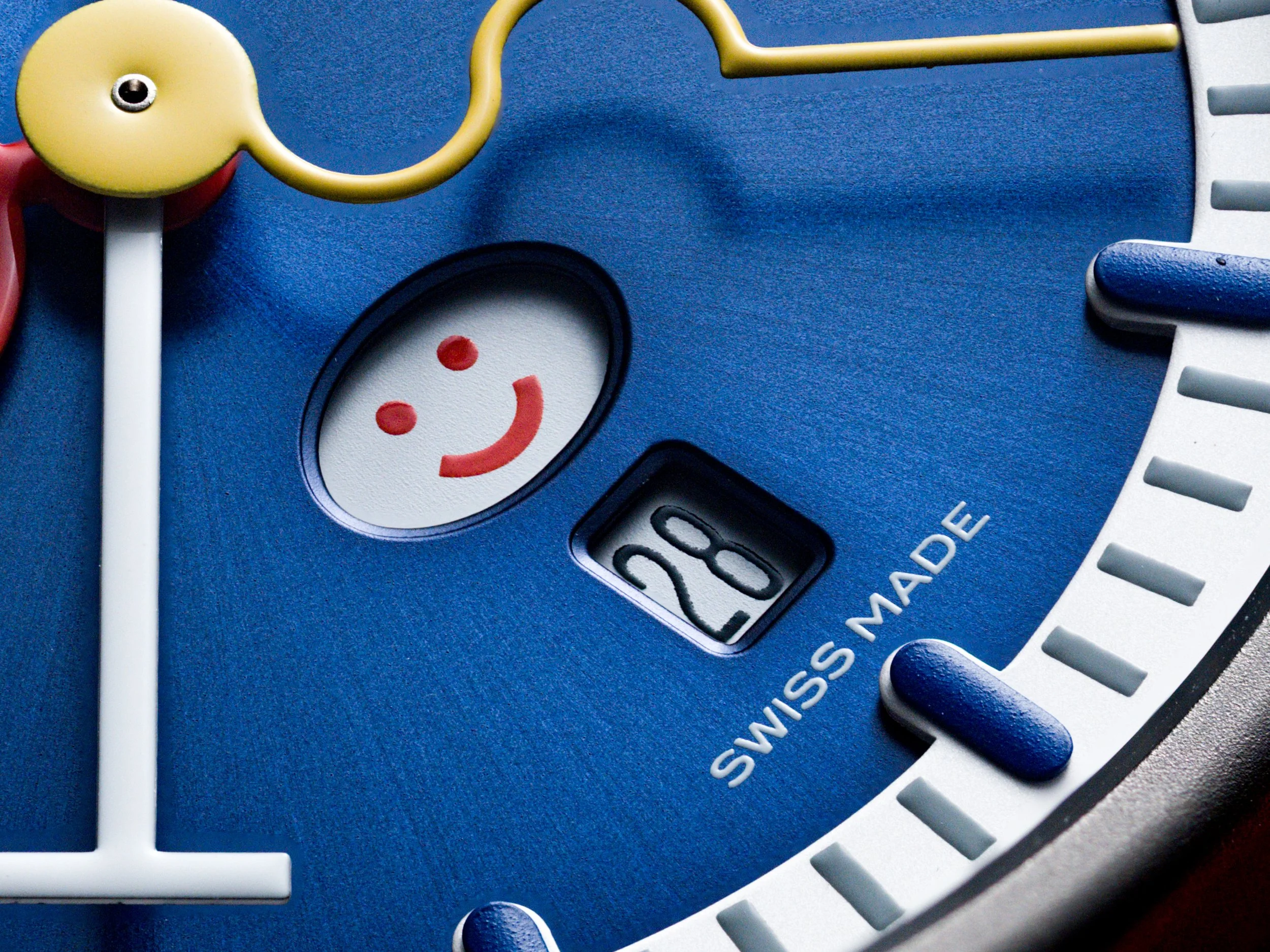 The Smile-Day Blue is a masterclass in functional whimsy. At its heart lies a complication that only Silberstein could conceive. At 6 o’clock, a day disc reveals a smiley face that reflects the mood of the week: black from Monday to Friday, turning a joyful red on the weekend, with the smile growing as the days progress. It is a visual reminder that time is not just measured, but experienced.