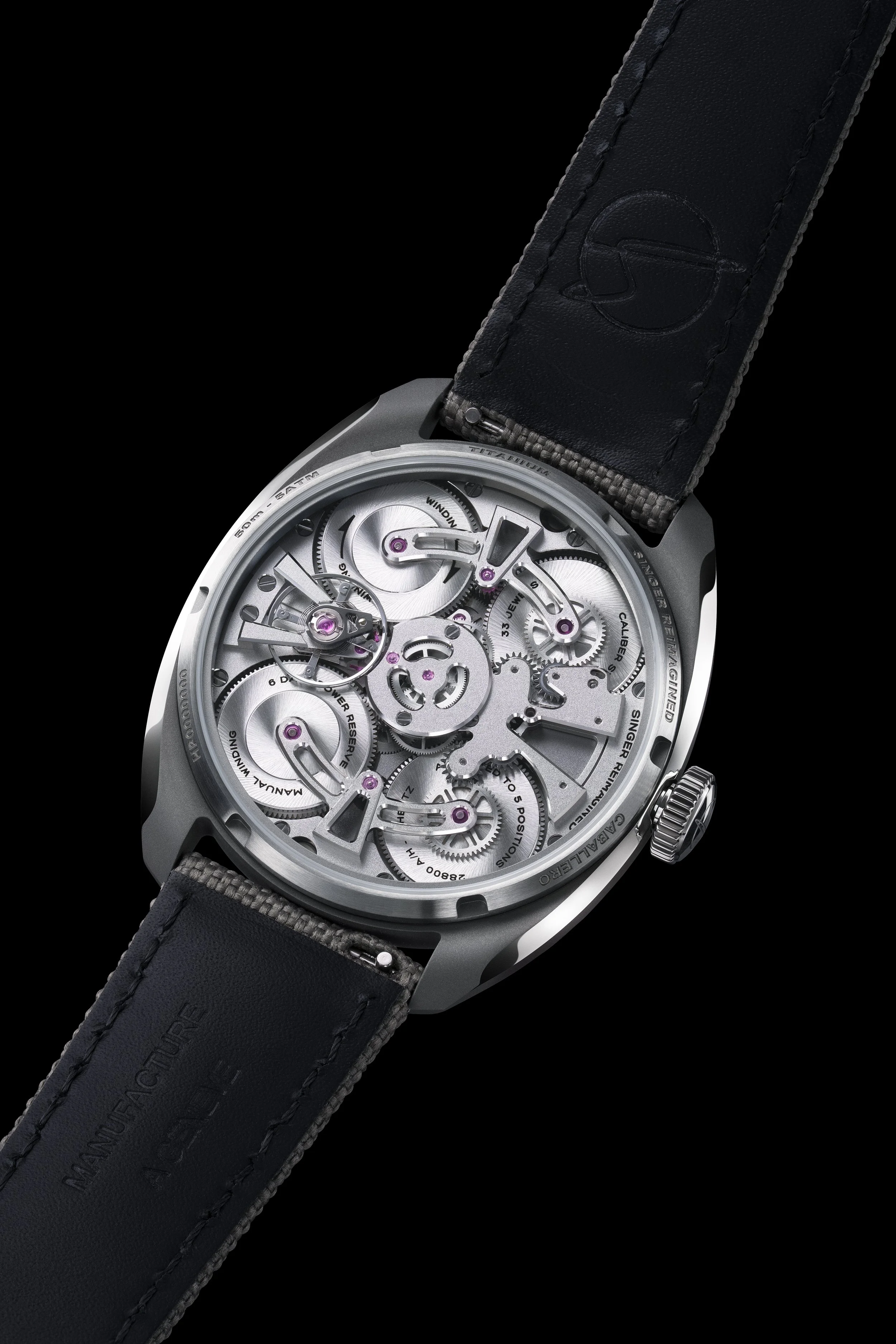 Turn the watch over and the intent becomes unmistakable. The open caseback reveals Singer's ground-up creation: Calibre 4 ST, a four-barrel manual-winding movement delivering six days of stable, linear power reserve. This is not adaptation. It is a mechanical manifesto—145 components, 33 jewels, 28,800 vph, engineered for chronometric performance rather than nostalgia. The four barrels, coupled 2x2 in series and parallel, provide a flat energy curve that translates to real-world accuracy: -4/+6 seconds per day.