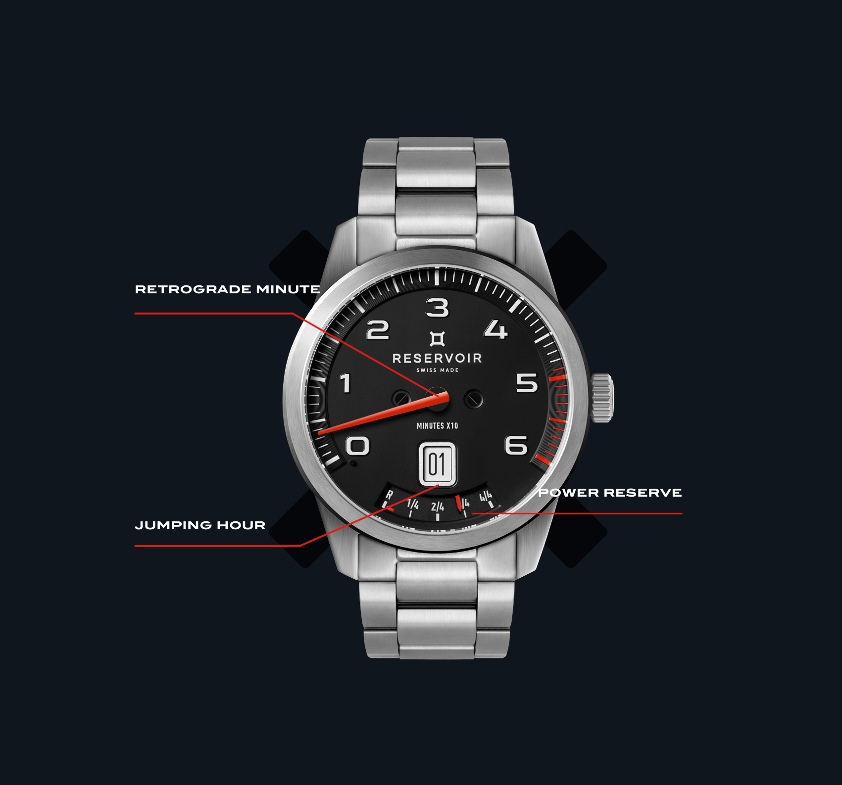 All their art is revealed in the precision of measurements, the rigor of controls and the attention paid to each stage of work, regardless of the mechanical complexity of the watch. The fact that the checks are so thorough, and that such attention is devoted to every minor detail, means that RESERVOIR is truly proud to display the SWISS MADE label, even in its logo.