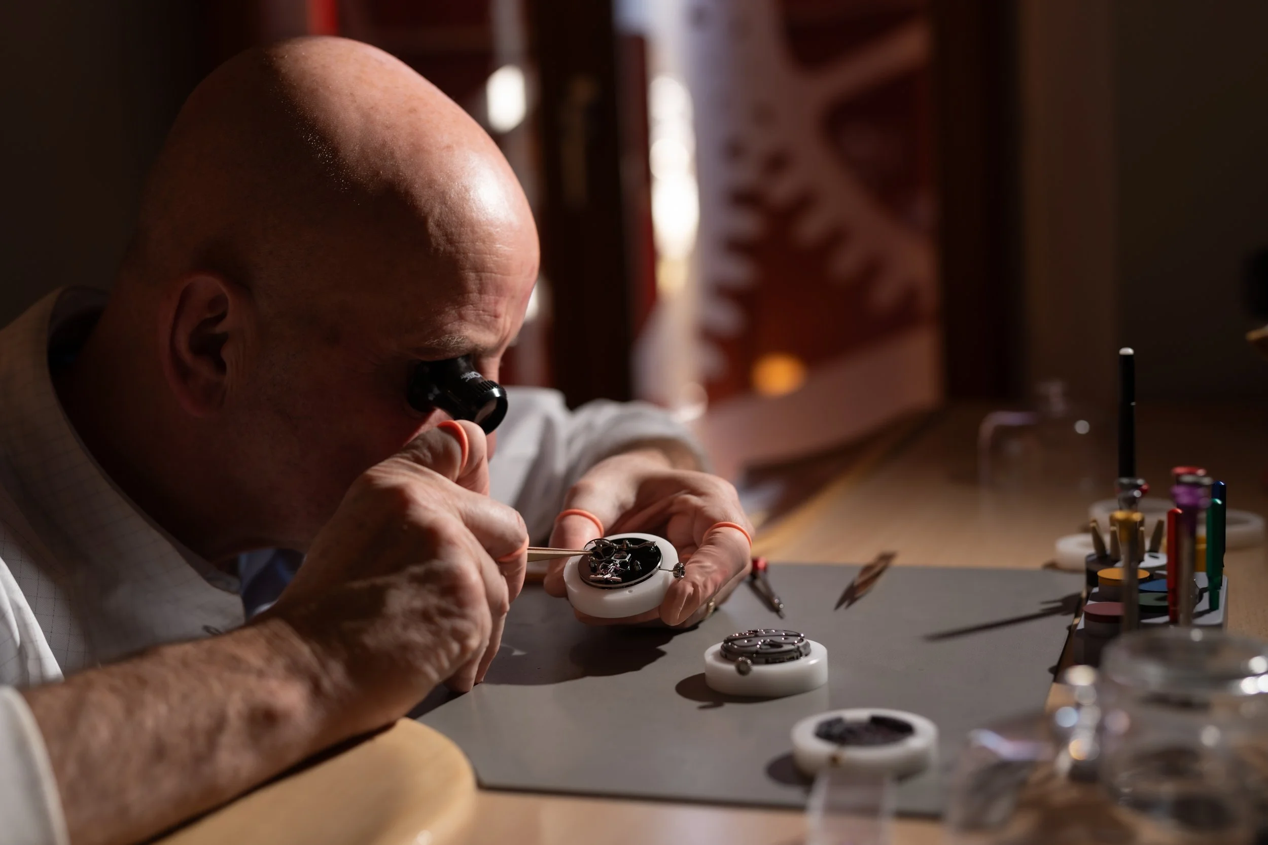 Born in 1963 in the Franco-Swiss border village of Charmauvillers, Emmanuel Bouchet represents the living bridge between French and Swiss watchmaking traditions. Having engineered numerous masterpieces and complications, including the Harry Winston Opus 12, Emmanuel Bouchet is the founder and genius watchmaker behind his brand.